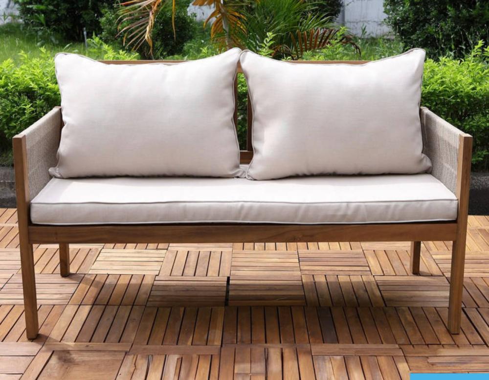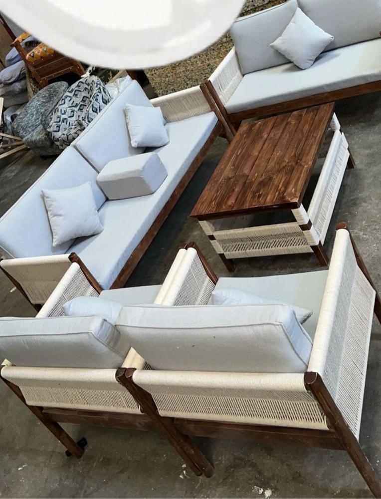 طقم جلسة خشب بخيوط أبيض يكفي 7-9 اشخاص، يحتوي على التالي: