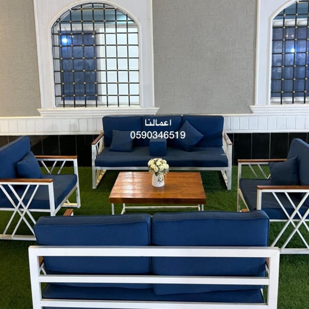 طقم جلسة حديد ابيض ديل يكفي 7 اشحاض تطريز: