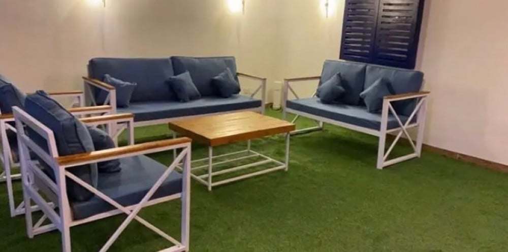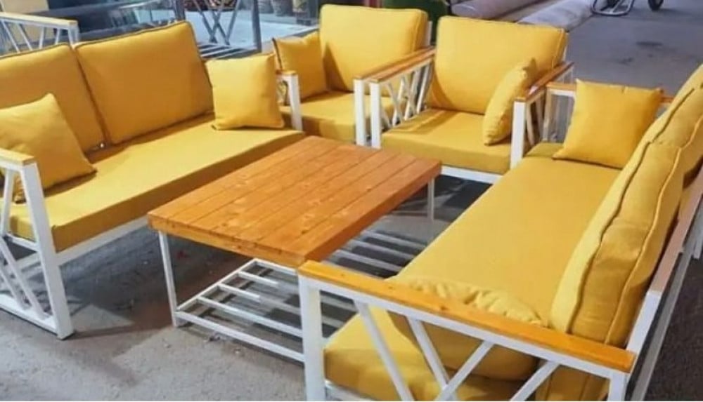 طقم حديد ملبس بخشب يكفي 7-9 اشخاص، يحتوي على التالي: