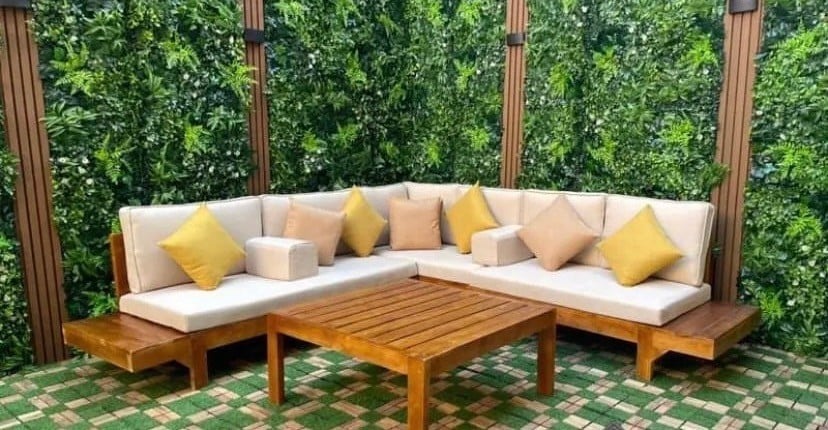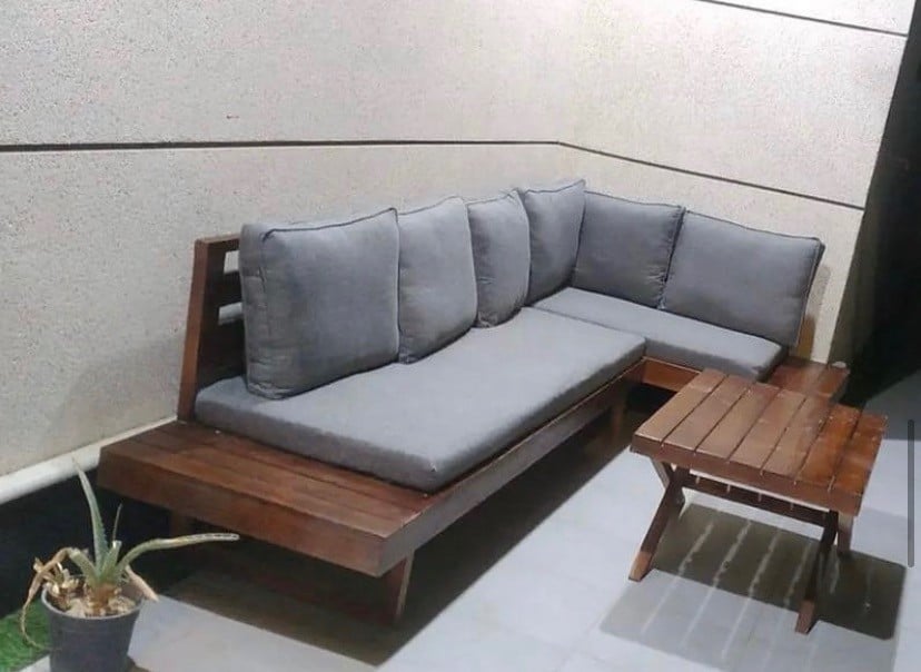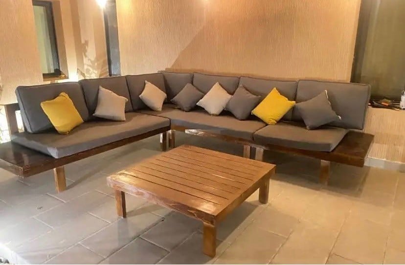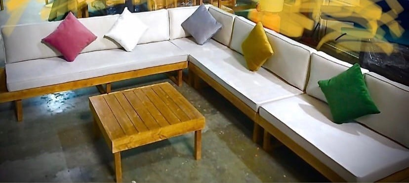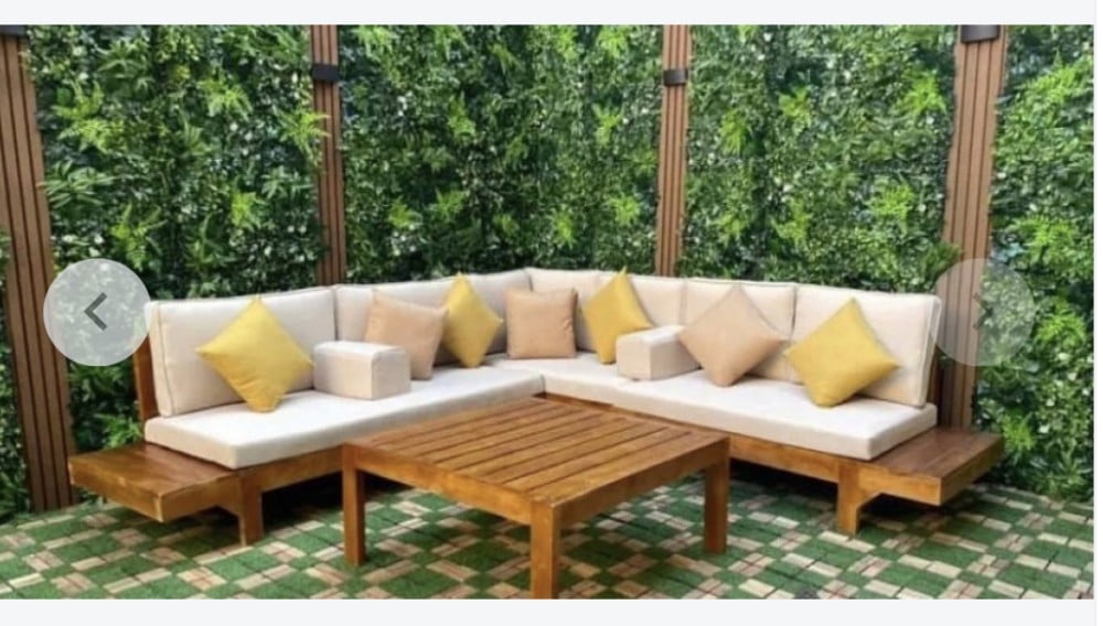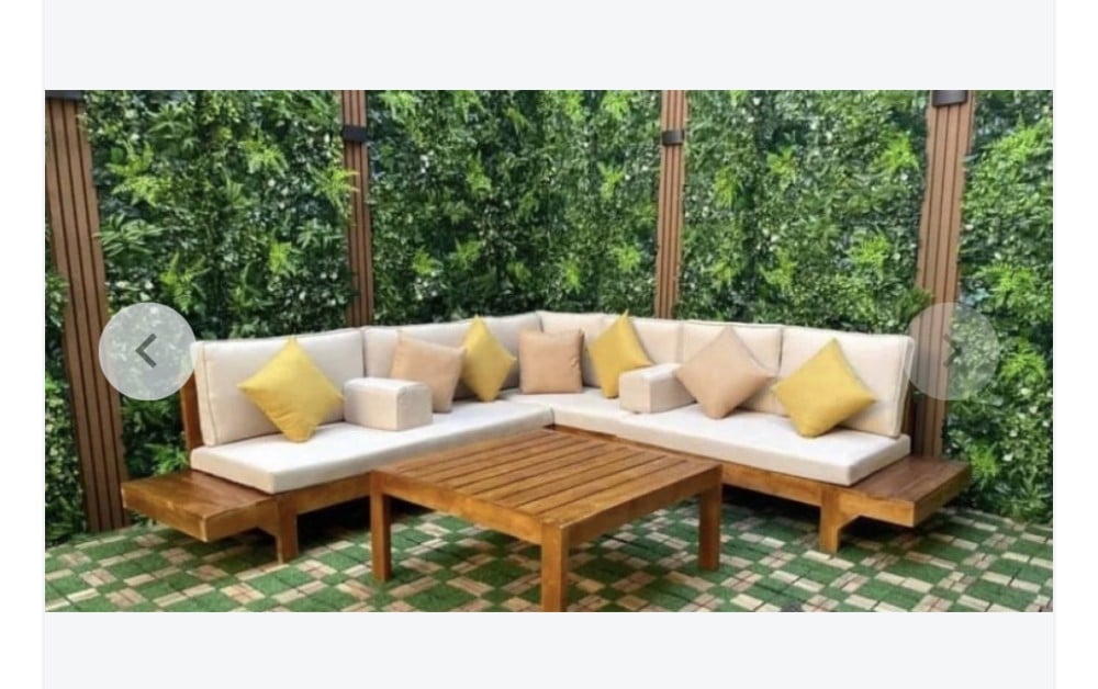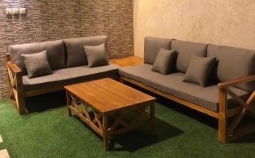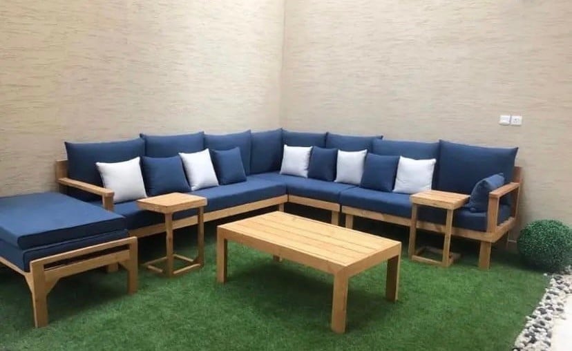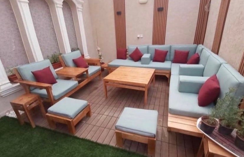 جلسة خشب سويدي ضد المطر والرطوبة والشمس شامل المراتب والمخدات الصغيرة مقاس :
